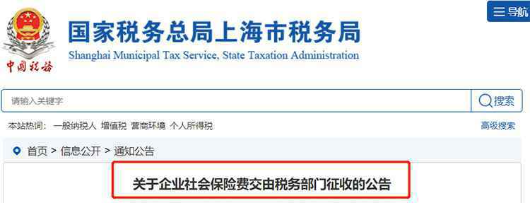 10月30日,北京、上海、山东、山西、湖南、吉林、广西、贵州、四川、新疆、西藏、深圳、青岛等,10多个省市人社局相继发布《关于企业社会保险费交由税务部门征收的公告》的通知,正式宣告税务部门全面接管社保费的征收渠道。